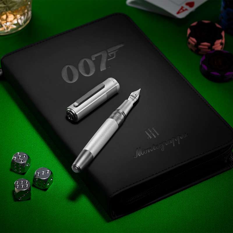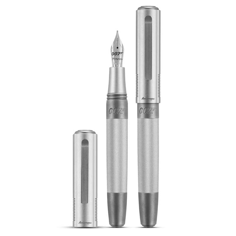 Фирменные детали. Скрытая в крышке с полым наконечником вставка из сплава для нарезки напоминает об одном из самых знаковых эпизодов кинематографа: открывающемся стволе пистолета в титрах. Гравировка логотипа агента 007 на корпусе и наконечнике, а также амбиграмма Montegrappa на торце подчеркивают сдержанность, но в то же время безошибочность.
